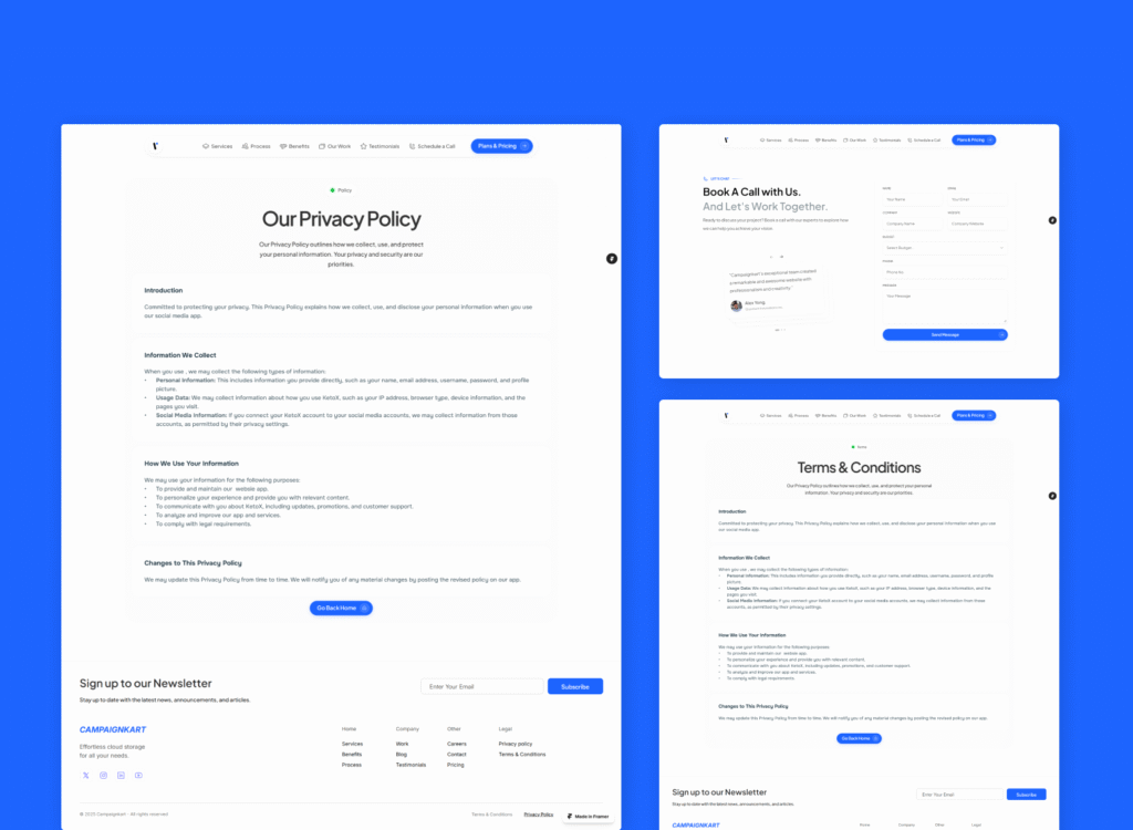 CampaignKart is a digital marketing and automation service that helps brands scale through result-driven campaigns and streamlined marketing strategies. The client needed a professional online presence to build credibility and clearly communicate their offerings to potential clients.